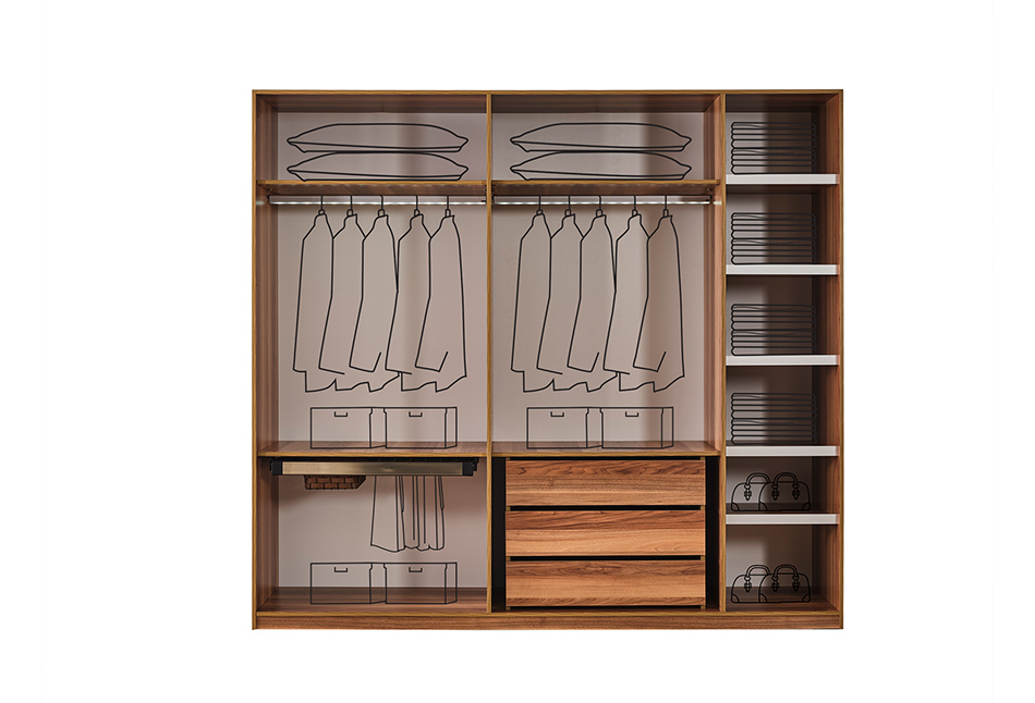 Tesla Ceviz Dolabı, cevizin sıcak tonlarıyla odanıza doğal bir şıklık getirir. Sade ve modern tasarımıyla dikkat çekerken, geniş iç hacmi ve düzenli raflarıyla eşyalarınızı kolayca organize etmenizi sağlar. Siesta Ceviz Dolabı, odanızı düzenli tutarken aynı zamanda şıklık katıyor.