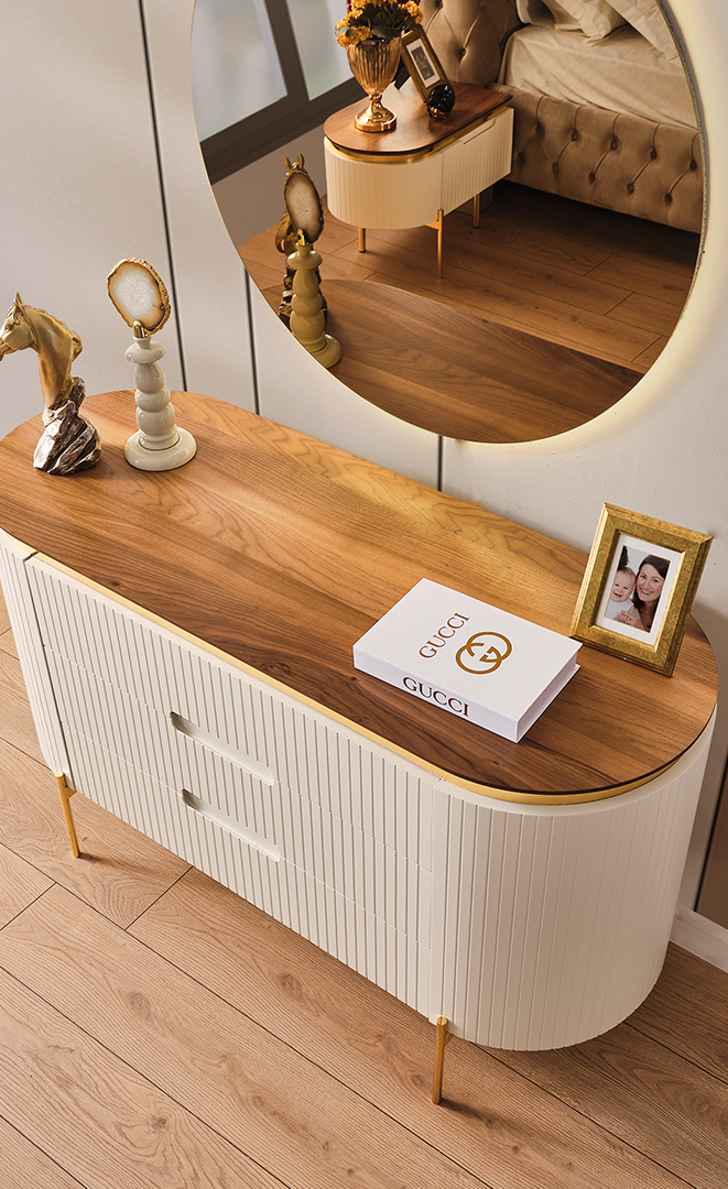Tesla Ekru Şifonyer, sakin ve doğal bir görünüm sunarak odanızı sıcak bir atmosfere taşıyor. Ekru rengi ve basit tasarımıyla dikkat çeken bu şifonyer, odanızın düzenini sağlarken huzurlu bir ortam yaratıyor