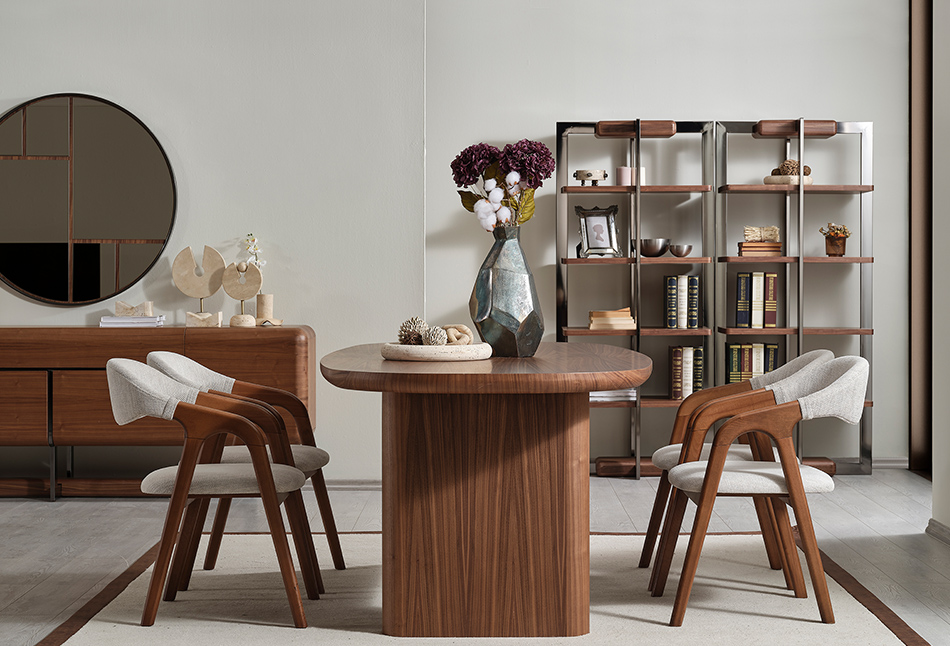 Dallas Yemek Odası, klasik ve zarif tasarımıyla göz alıcı bir yemek alanı sunar. Ahşap detaylar ve sağlam yapıya sahip olan Dallas mobilyaları, uzun ömürlü ve dayanıklıdır. Şık masa ve sandalyeler, odanıza sıcaklık ve zarafet katarken, geniş oturma alanı da konforlu bir yemek deneyimi sunar. Dallas Yemek Odası, evinize geleneksel bir dokunuş sağlayarak zamansız bir şıklık sunar.
